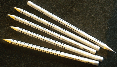 On my usual visit to this Yorkville stationery shop, I'm picking up FABER CASTELL 2B grip, three-sided pencils.